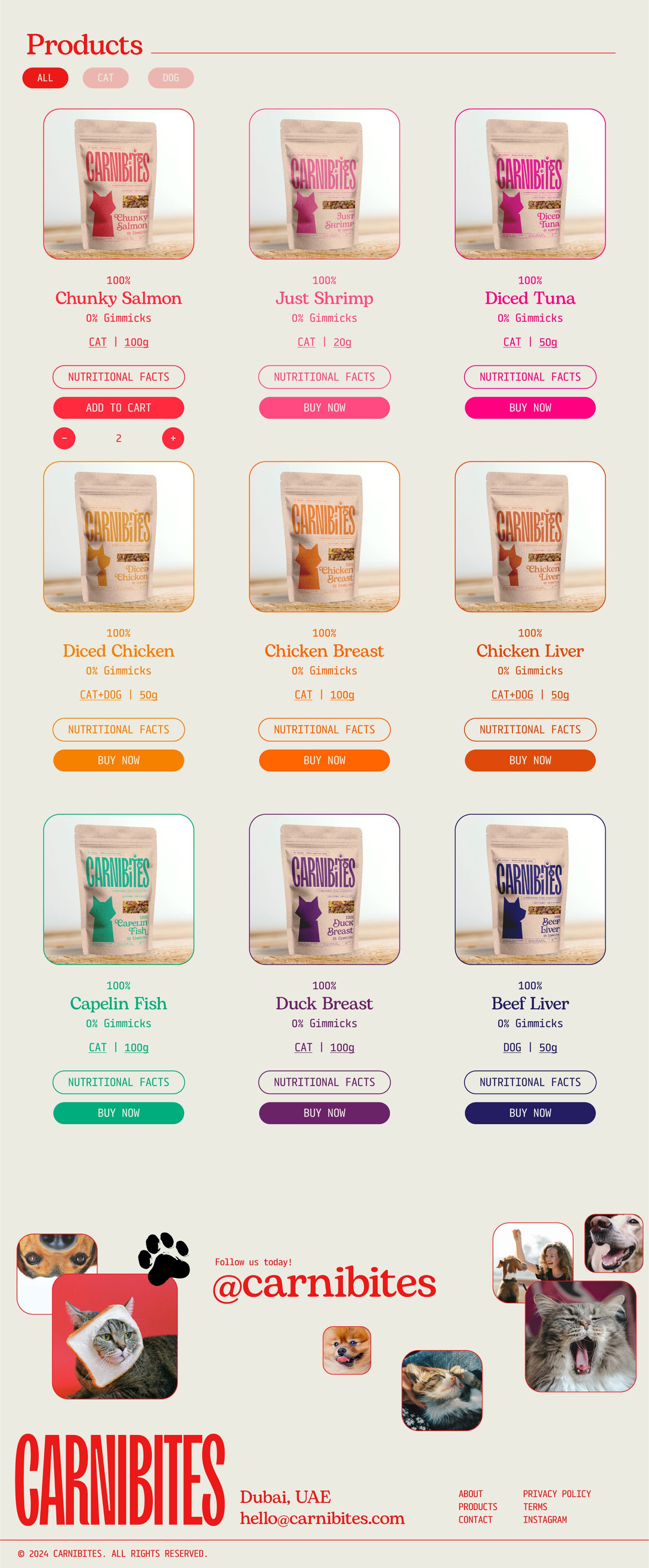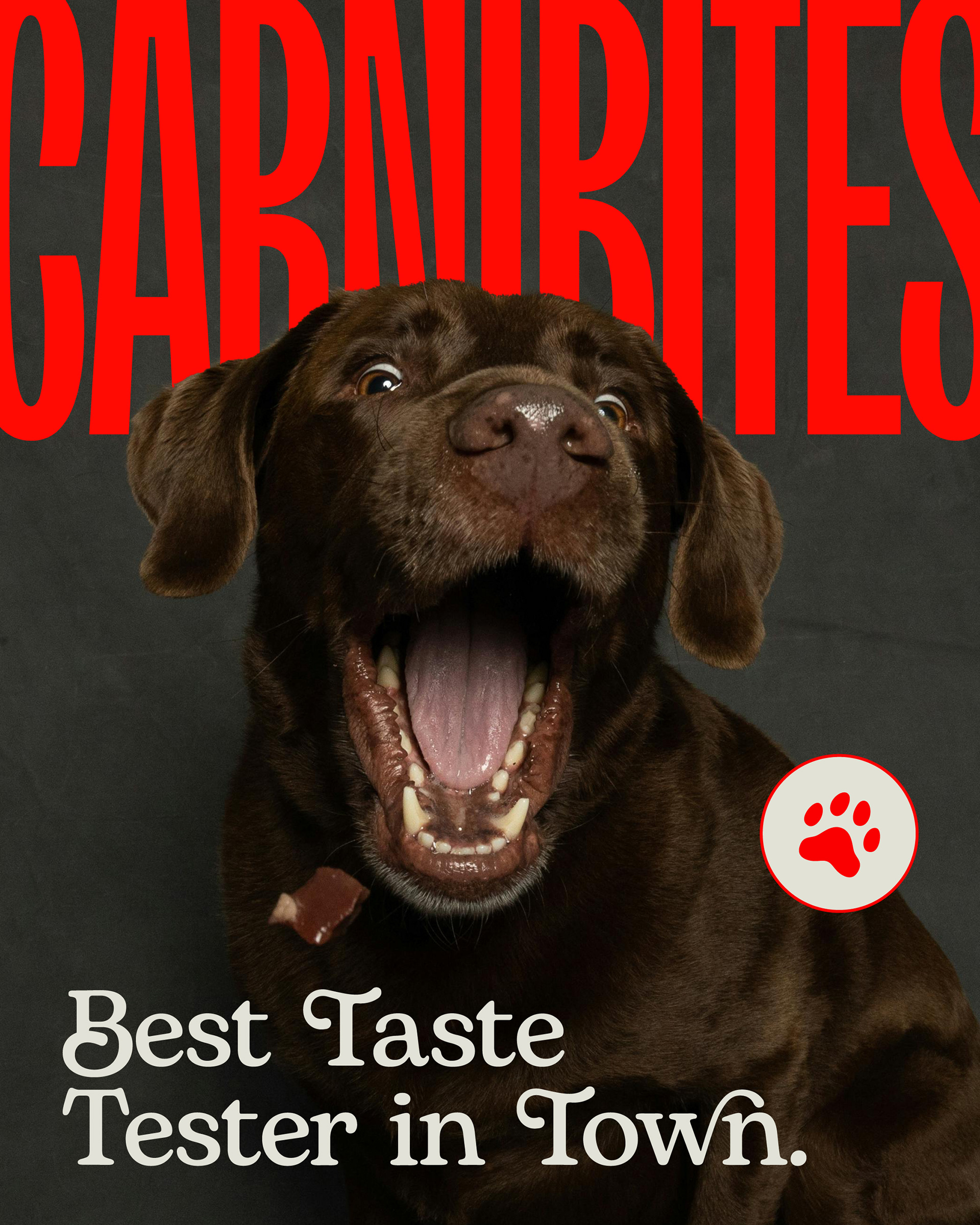 The brand was built around a bold, no-nonsense philosophy: 0% gimmicks. From strategy to execution, Carnibites champions transparency, clean ingredients, and a deep respect for the animals we call family.